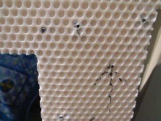 天井パネルは、発泡系の樹脂パネルと、こんな凸凹の中空の樹脂パネルを合わせたものです。