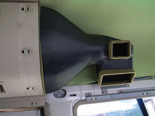 運転席側の天井パネルを外して気が付いたのが、どうやら、エアコンダクトは上段と下段の2つに分かれているわけではないこと、さらにダクトはインナーとカバーの2つに分かれてもいないシンプルな空洞であることの2点です。