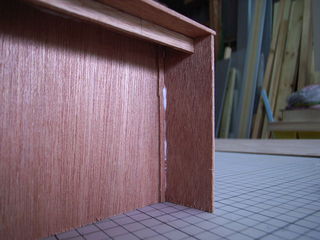 模型では、背板と側板の間にしかジョイントが無いけれど、実際の必要な箇所は背板と天板、天板と側板のそれぞれの間にも必要になります。