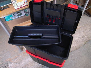 下は、タダの箱ですが、上は、いわゆる普通の工具箱の造りです。