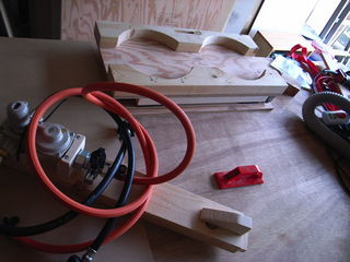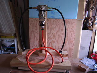 これの製作条件は、キャスター付きの可動の台にガスボンベを載せて、奥まった場所にあるボンベを引き出して交換しやすくするとともに、移動中はしっかりと固定出来る、です。