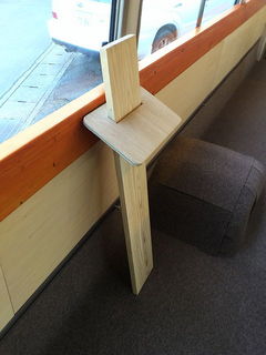 スペースの関係で完全な椅子を用意するのは無理ですが、腰を少しだけでもサポート出来れば、随分とラクになる事は承知していたので、当初より、「腰当て」のようなものを付ける考えはありました。