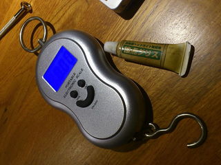 ガスボンベの重さを計るのに、本当はこのつり下げ式秤を使うつもりでした。